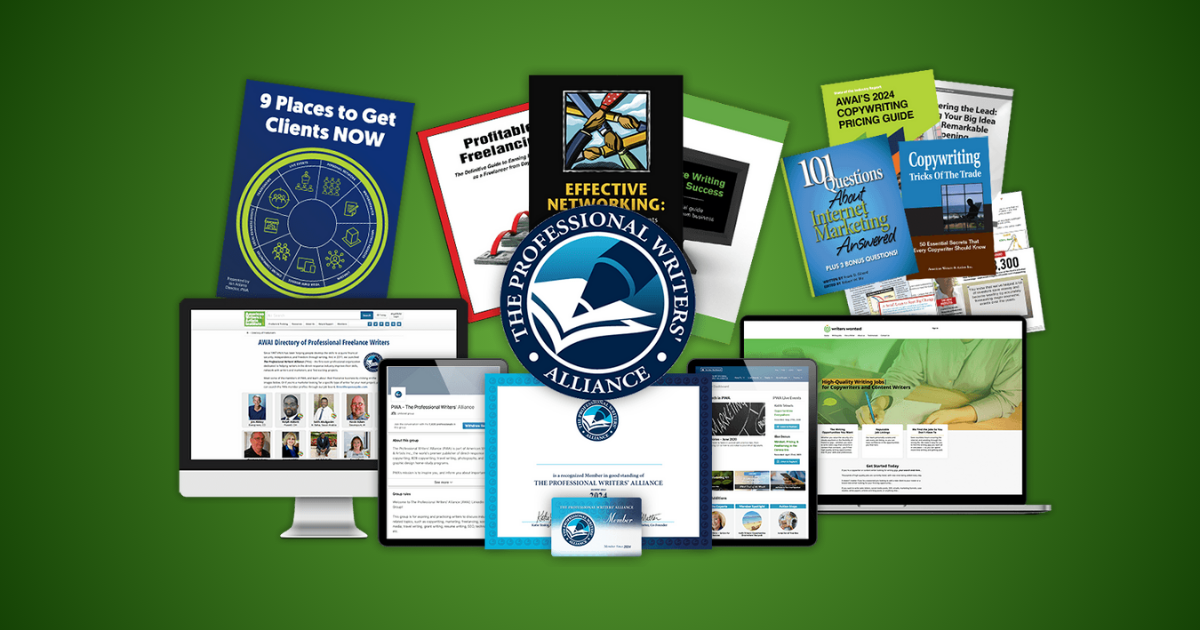 The LinkedIn group, FREE access to our exclusive WritersWanted job board, the tutorials, the tools, the special reports, the swipe file …